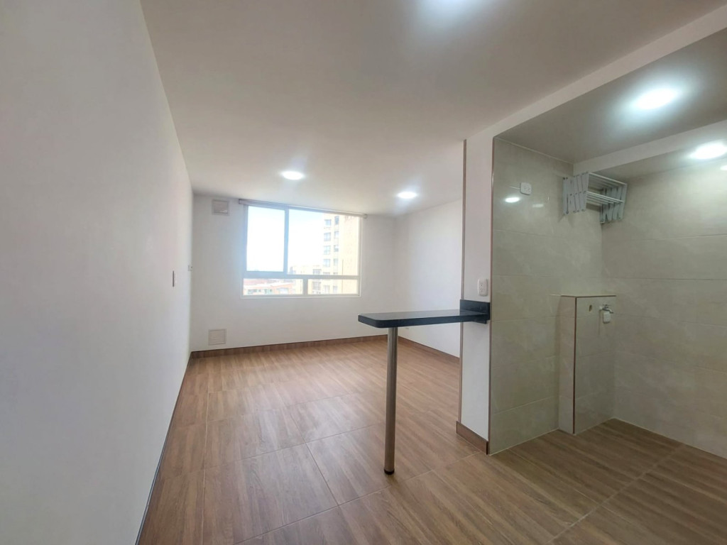 Lindo apartamento, ubicado en piso 10, de vista exterior con excelente iluminación natural, cuenta con sala comedor, dos alcobas (una con closet), pisos en cerámica, un baño, cocina integral a gas y ducha eléctrica. El conjunto cuenta con salón comunal, parque infantil, zona BBQ, vigilancia 24/7, ascensor y CCTV. Cerca a Avenida Guayacanes, Avenida Boyaca, Centro Comercial Edén, zona residencial y rutas del Sitp.