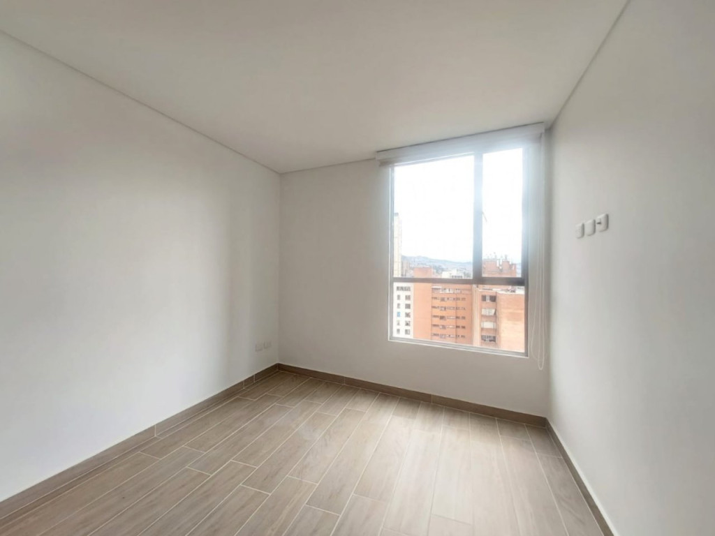 Lindo apartaestudio para estrenar, ubicado en piso 18, de vista exterior con excelente iluminación natural, de un solo ambiente, cuenta con closet, pisos en cerámica, un baño y cocina integral a gas. El edificio cuenta con salón comunal, gimnasio, terraza comunal, zona de lavandería comunal, zona co-working, vigilancia 24/7, ascensor y CCTV. Cerca a Avenida Calle 19, Carrera 3, Universidad Central, Universidad Tadeo, Estación Transmilenio Las Aguas, rutas del Sitp y zona residencial.