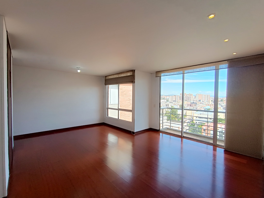 Apartamento de 83Mts, ubicado en piso Doce, con excelente iluminación natural. Cuenta con sala–comedor con balcón, estudio, cocina integral, zona de lavandería y calentador a gas. Dispone de tres alcobas con clóset, baño auxiliar de alcobas y alcoba principal con baño privado. Incluye depósito y dos garajes en línea. El conjunto ofrece vigilancia 24/7, CCTV, ascensor, gimnasio, salón social y parque infantil. Ubicado sobre la Carrera Cincuenta y Tres, a pocas cuadras de la Calle Ciento Veintisiete y de la Autopista Norte, en zona residencial, frente a las oficinas de Bavaria.