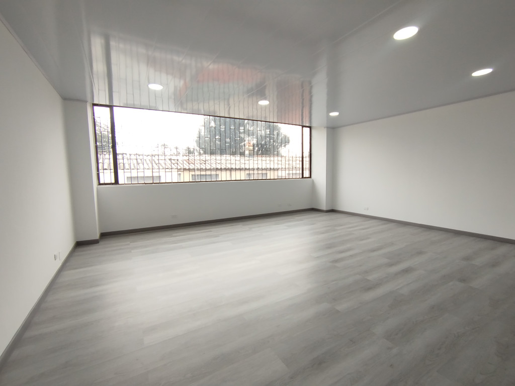 Oficina remodelada de 40 mts, pisos laminados, blackout, luces led y un garaje cubierto independiente . El centro comercial cuenta con vigilancia 24/7, CCTV y baños comunales. Ubicado sobre la Calle Ciento Cuarenta y Siete, a pocas cuadras de la Calle Ciento Cuarenta y Dos, Carrera Diecinueve, autopista norte, zona residencial y comercial.