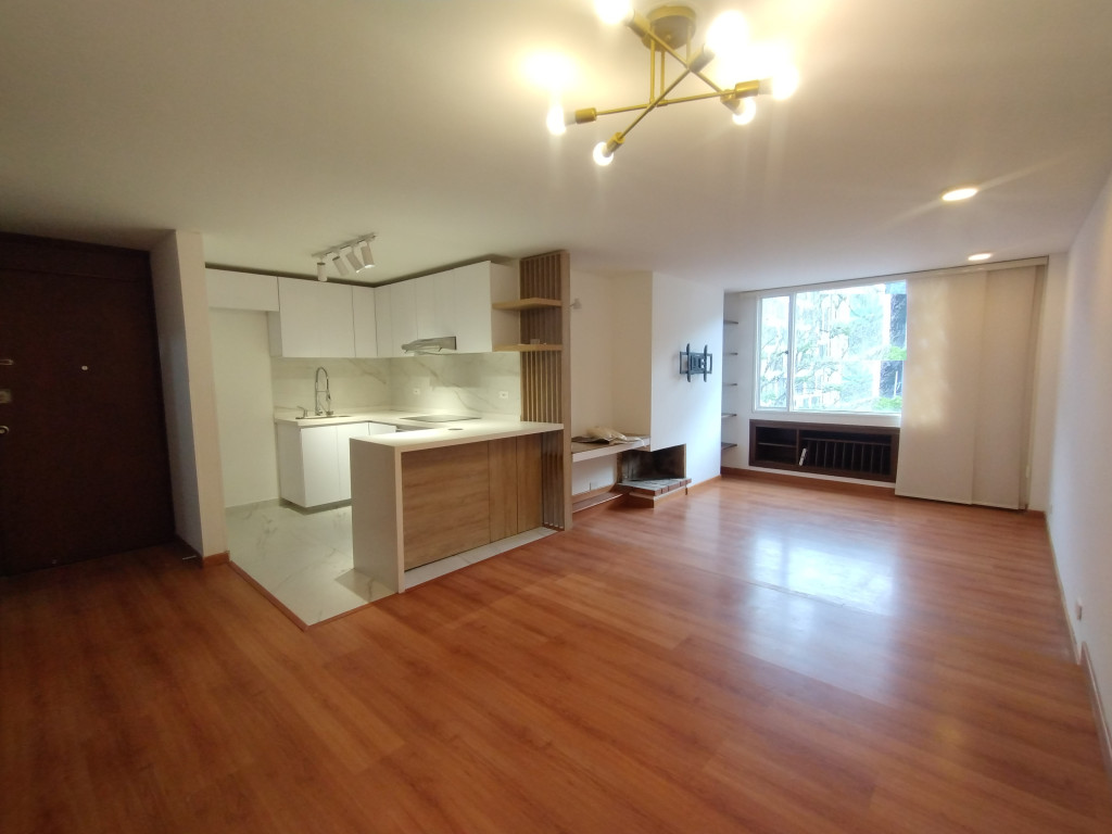 Cod.3234 Acogedor apartamento de 54M2 con excelente iluminación natural, en cuarto piso con ascensor; edificio estrato 6, vigilancia 24 horas. Sala comedor con chimenea, cocina integral eléctrica abierta, zona de lavandería independiente, 1 habitación con closet y baño, 1 garaje cubierto ubicado en otro edificio; Cerca a World Trade Center, Olímpica, Farmatodo, Vías de acceso Cl 100, Cr 11. Facilidad de transporte público.